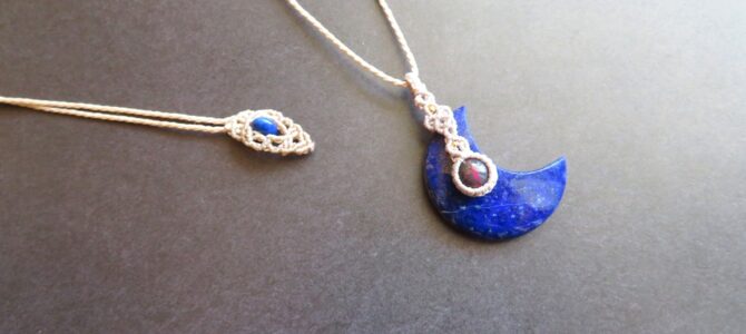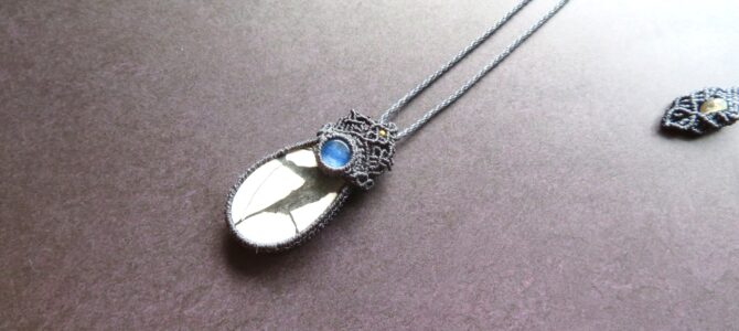 ホワイトマリガノジャスパーと小粒カイヤナイトを合わせたマクラメ編みのペン…