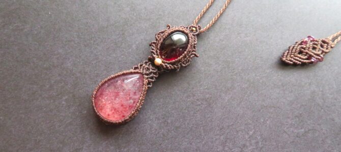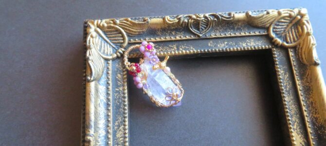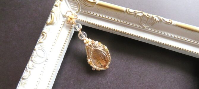 ルチルクォーツのワイヤージュエリーペンダント。 ルチルクォーツは針…