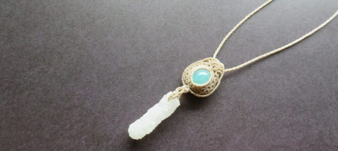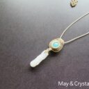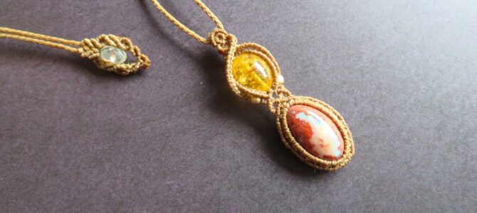 カンテラオパールとアンバービーズを合わせたマクラメ編みのペンダントです。…