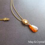 アンバー(琥珀)とオパールを合わせたマクラメ編みのペンダント。
