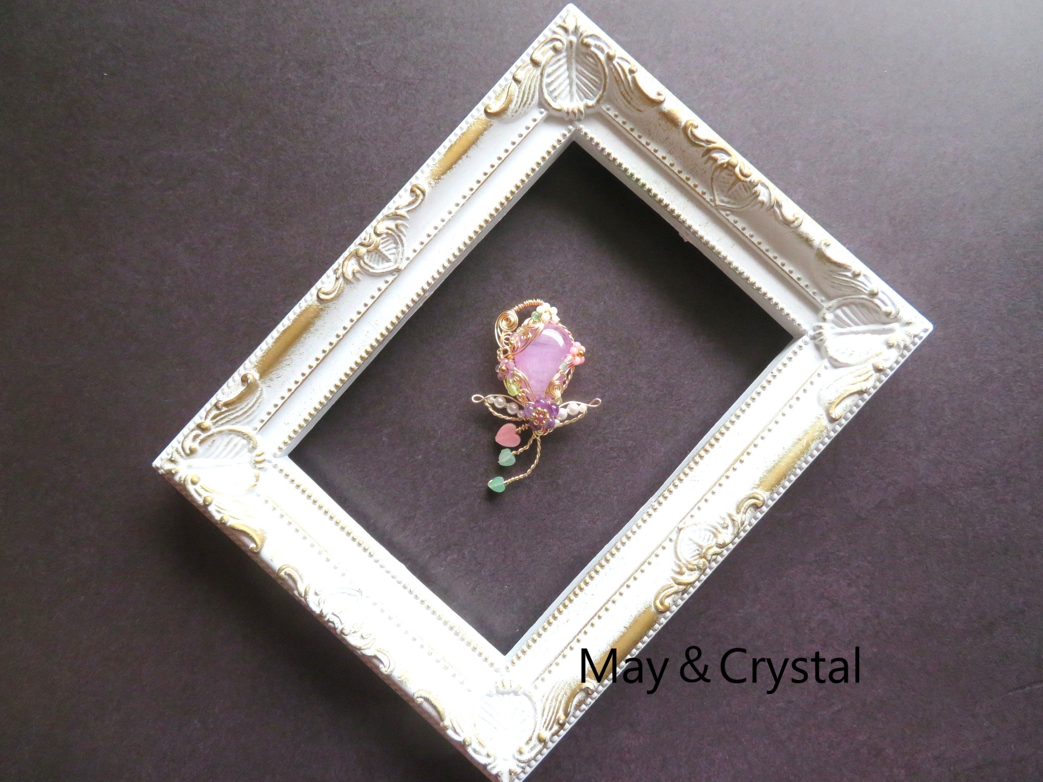 さて、このたびはクールビューティーなピンクと相性の良いゴールドカラーワイヤーを組み合わせ、天女をイメージしたデザインにてロマンティックな雰囲気で仕立ててみました♪