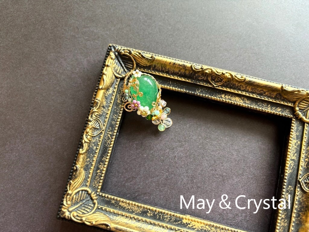 アベンチュリンは石英の一種で実はいろいろなカラーがありますが、今回の子はグリーン。。