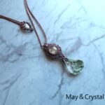 ヒマラヤ水晶とレインボークォーツを合わせたマクラメ編みのペンダント。