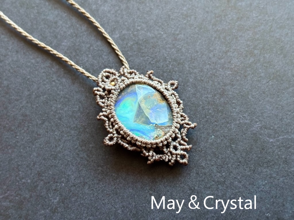 ピクチャーオパール(ボルダーオパール)のマクラメ編みペンダント。