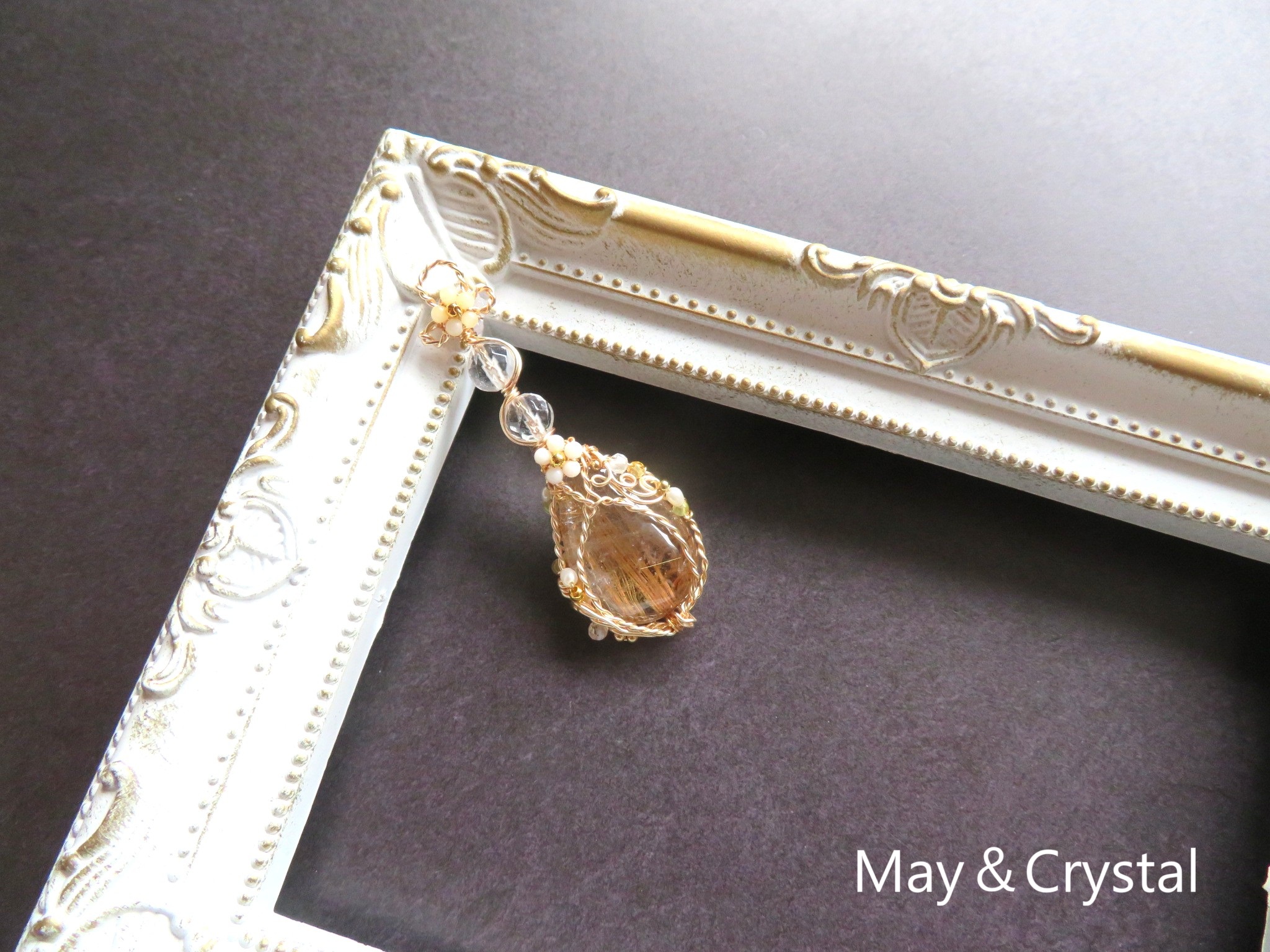 ルチルクォーツは針水晶ともいいますが、もちろん実際に針が入っているわけではなく、二酸化チタン鉱物が針状に内包されているものです。