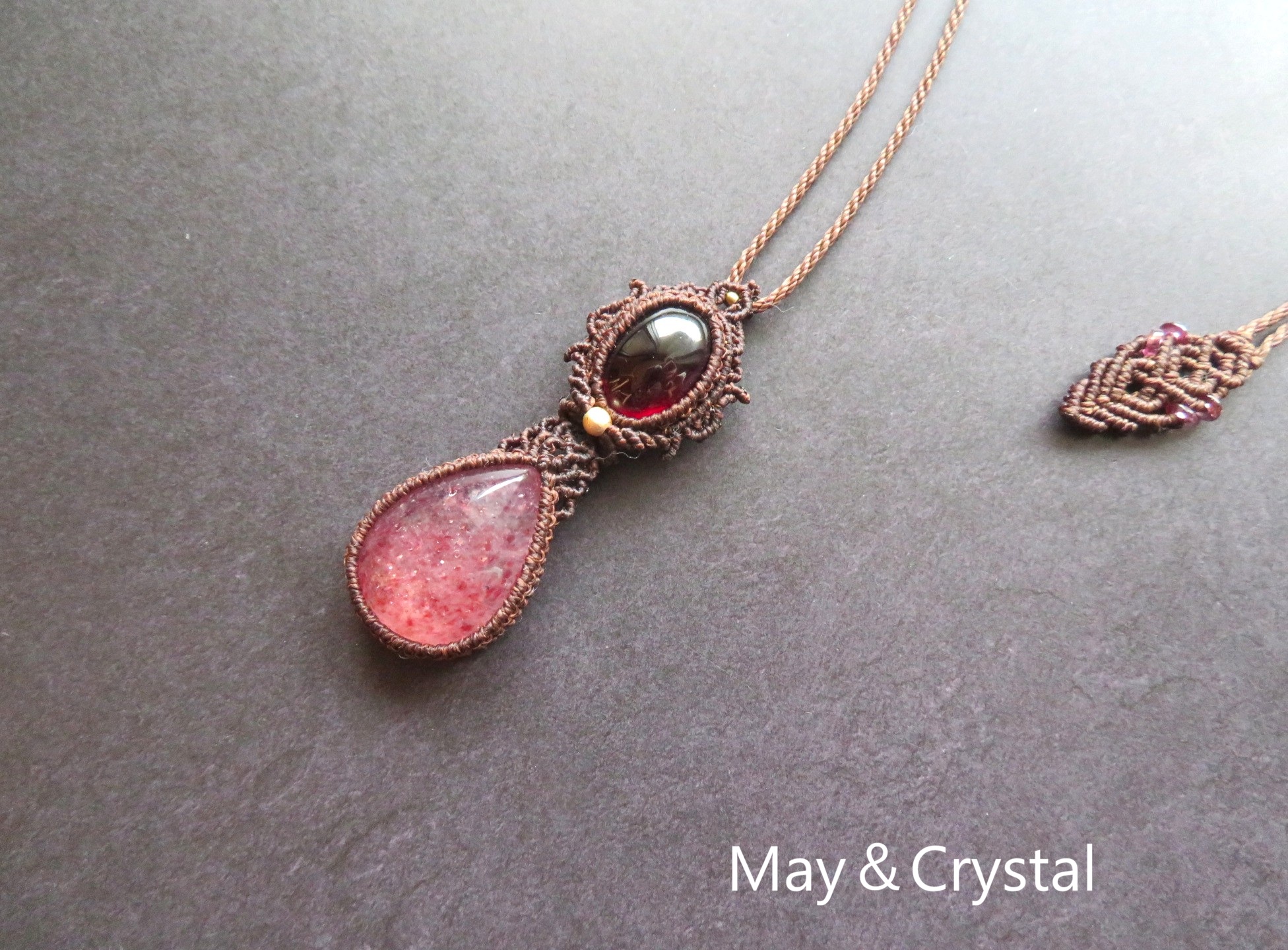 ロードライトガーネットとレッドアベンチュリンを合わせたマクラメ編みのペンダント。