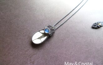 詳細を見る三日月のラピスラズリとブラックオパールを合わせたマクラメ編みのペンダント。 ラピスラズリは古来よりあらゆる地域で聖石として大切にされ、世界で最初にパワーストーンとして…