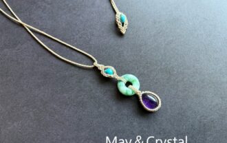 詳細を見る翡翠とアメジスト、そしてキングマンターコイズビーズを合わせたマクラメ編みのペンダント。 翡翠は東洋においては古来より願い事を成就させると考えられ、呪術や信仰に用いられ…