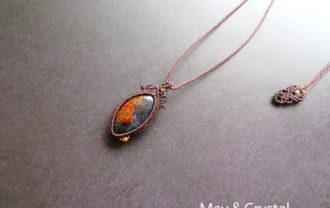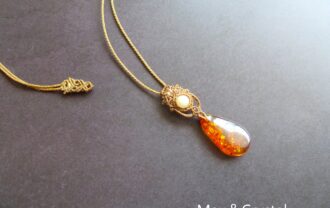 詳細を見るアンバー(琥珀)とオパールを合わせたマクラメ編みのペンダント。 アンバーとは3000万年前の松柏類の樹脂が化石化した有機質宝石で、とろんとした光沢と温かみのある石です…