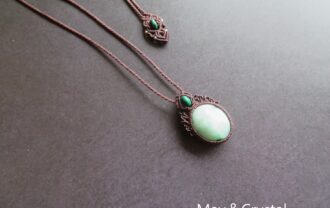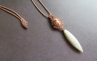 詳細を見るぷっくりした美しい翡翠を使ったマクラメ編みのペンダント。。 翡翠は東洋においては古来より願い事を成就させると考えられ、呪術や信仰に用いられてきた歴史あるパワーストーン…